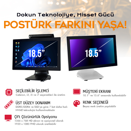 Postürk POS PC; restoranlardan marketlere, eczanelerden otellere kadar geniş bir yelpazede kullanılan, dayanıklı yapısı ve hızlı işlem gücüyle işletmelerin operasyonlarını güvenle teslim edebileceği bir çözümdür. Yerli üretimin sağladığı hızlı servis desteği ve yedek parça avantajı, işletmelere sürdürülebilir bir kullanım sunar.